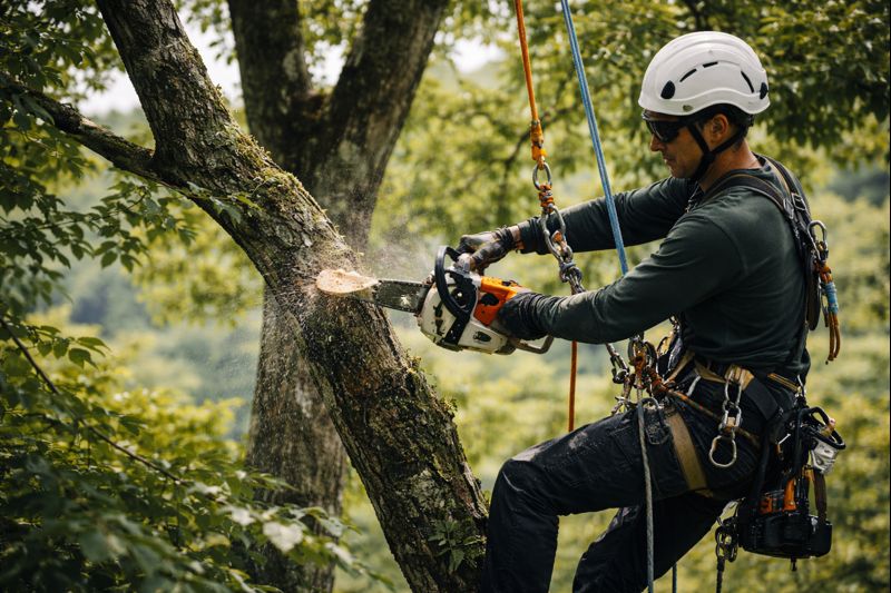 シンラインは、ロープアクセス・ツリークライミングの技術を用いて、高所での支障木・危険木除去を中心とした作業を行っています。安全性と周囲への配慮を大切にし、無理のない作業を心がけています。